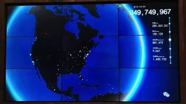 微信有多強大?這上面的數據就是最準確的解釋。這是一組實時數據,顯示的是當時時刻全球使用微信的人數和分布情況。佩服!